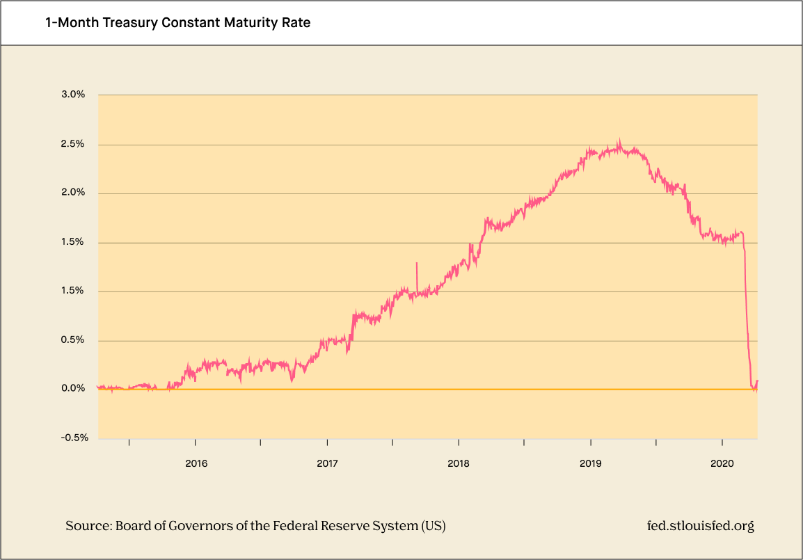 Demand got so high, in fact, that for a time, yields on one-month and three-month T-Bills actually turned negative. Paradoxically, this means that an investor who held the bond for its full duration, or “to maturity,” would receive less money back than they initially put in. (It would be like investing $1,000 and receiving $999.96 at the end of the month.)