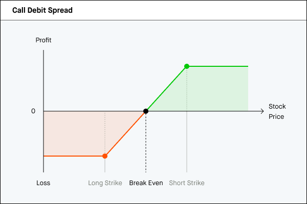 Bullish debit spreads use calls while bearish debit spreads use puts, and options are traded on a 1:1 ratio in the same expiration. Together, the net price of the two options equals the total cost of the spread. The max value a spread can reach is the difference between the strikes. This spread can still profit if the stock moves the right direction, but it’s more insulated from an implied volatility (aka “IV”) drop than just a long option by itself.
