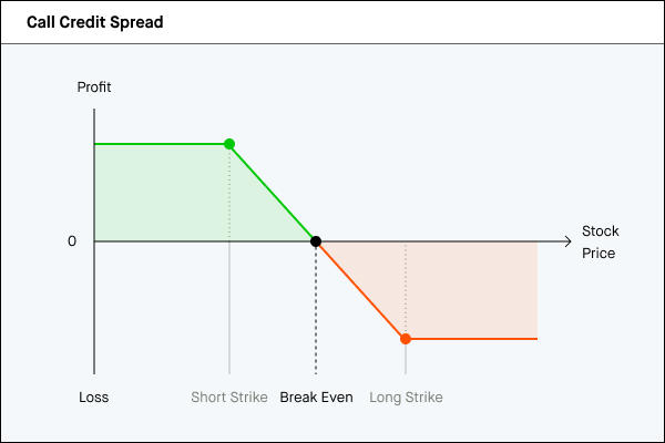 EXAMPLE: Sell August 55 Call for $3 + buy August 60 Call for $2. Net credit = $1 (x100 = $100 per spread)