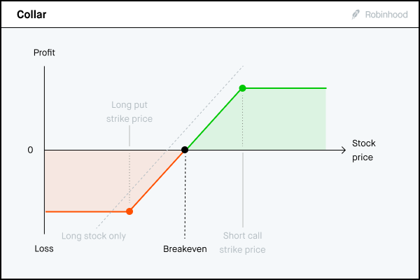 Collars are generally appropriate as a short-term hedge. Since the focus of the position is the shares you own, you typically don’t want to cap your upside profit potential for too long. If you have a strong suspicion that your position could drop in the near-term, maybe due to a bad earnings call, a collar can be an effective hedging solution. However, if the underlying stock price rises, you risk getting your shares called away. You can help avoid this by closing the collar after the event occurs, but before expiration, essentially returning the position back to a long stock position.